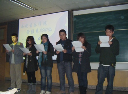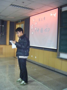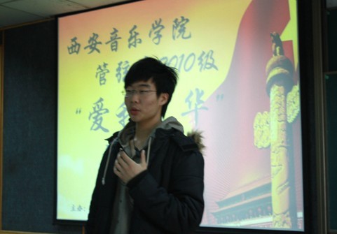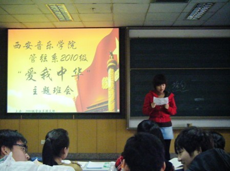 11月3日下午16时,管弦系2010级全体同学在五号教学楼415教室举行了主题为“爱我中华”的主题团日活动,活动上同学们用爱国诗歌朗诵、主题讨论、师生交流、演讲等多种丰富的形式表达自己的爱国情怀。