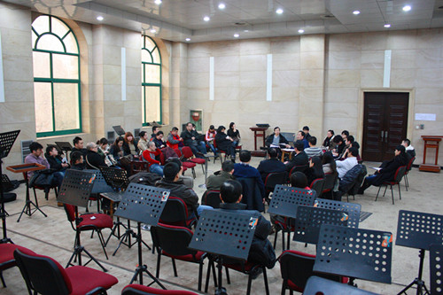 2月25日下午3点,管弦系在学术厅西二楼召开了全体教师会,常浩书记传达了学院的文件精神以及对本学年的工作要求,冯继铖主任对教学工作和科研工作做了安排部署,希望管弦系继续保持团结的氛围、大家共创和谐管弦。侯颉副主任对艺术实践工作进行了安排,