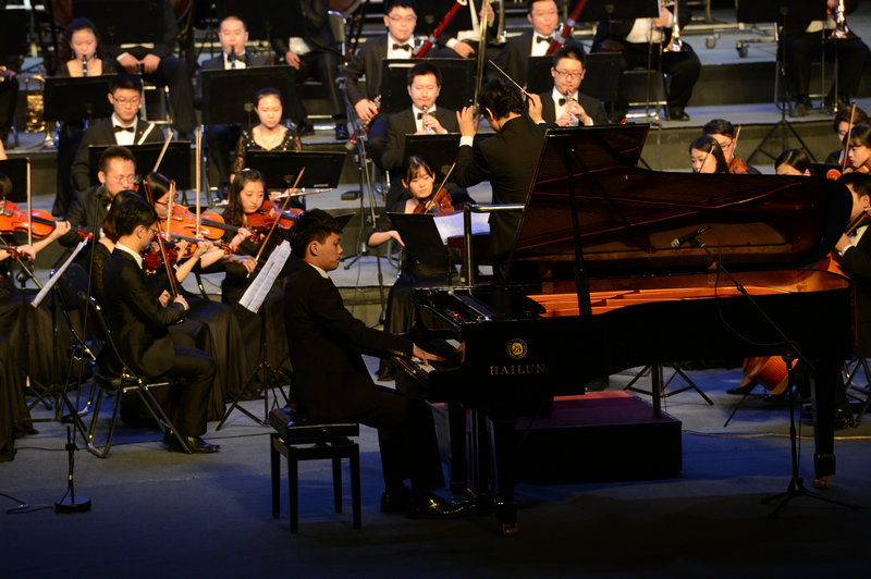 音乐会由我院交响乐团和音乐教育学院合唱团联袂出演,指挥,侯颉。音乐会从始至终充满着激情,饱含对中华民族峥嵘岁月的回望和对美好愿景的祝福。曲目包括:管弦乐《红旗颂》(吕其明曲);男声独唱《跟你走》(张海词 左建翼曲 演唱:白萌);合唱《四渡赤水出奇兵》——选自《长征组歌》(领唱:赵明明郭晶铭);女声独唱《又到吴起镇》(尚飞林词 赵季平曲 演唱:王小健);管弦乐《山丹丹开花红艳艳》(屠冶久改编);女声独唱《我爱你 中国》(瞿琮词 郑秋枫曲 演唱:杨照民);女声独唱《把一切献给党》(李峰词印青曲 演唱:逯璐);男声独唱《延安颂》(莫耶词 郑律成曲 演唱:邢立珂);管弦乐《激情燃烧的岁月》(关峡《第一交响序曲》);钢琴协奏曲《黄河》第二乐章、第四乐章(冼星海曲钢琴演奏:赵帅);黄河大合唱--《黄河船夫曲》《保卫黄河》(光未然词冼星海曲 合唱:音乐教育学院合唱团)。