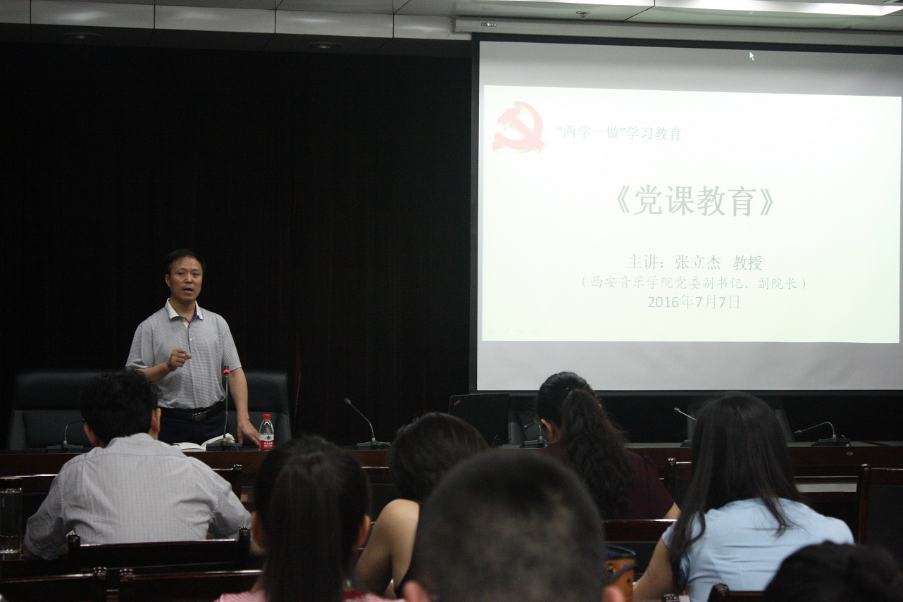 为深入推进“两学一做”学习教育,不断加强党员思想建设,凝聚政治共识,7月7日上午,院党委副书记、副院长张立杰为管弦系全体党员讲授了一堂生动精彩的党课。