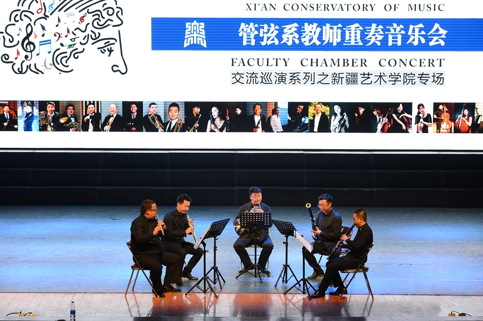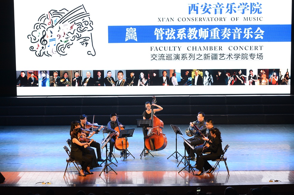 8日晚在新疆艺术学院音乐厅成功举办“西安音乐学院管弦系教师重奏音乐会”,现场气氛热烈,观众座无虚席。演出得到了新疆艺术学院师生们的高度赞誉,称“西安音乐学院的教师重奏音乐会是国内具备一流水平的音乐会!”并真诚期望今后进一步加强两地院校间合作与交流。