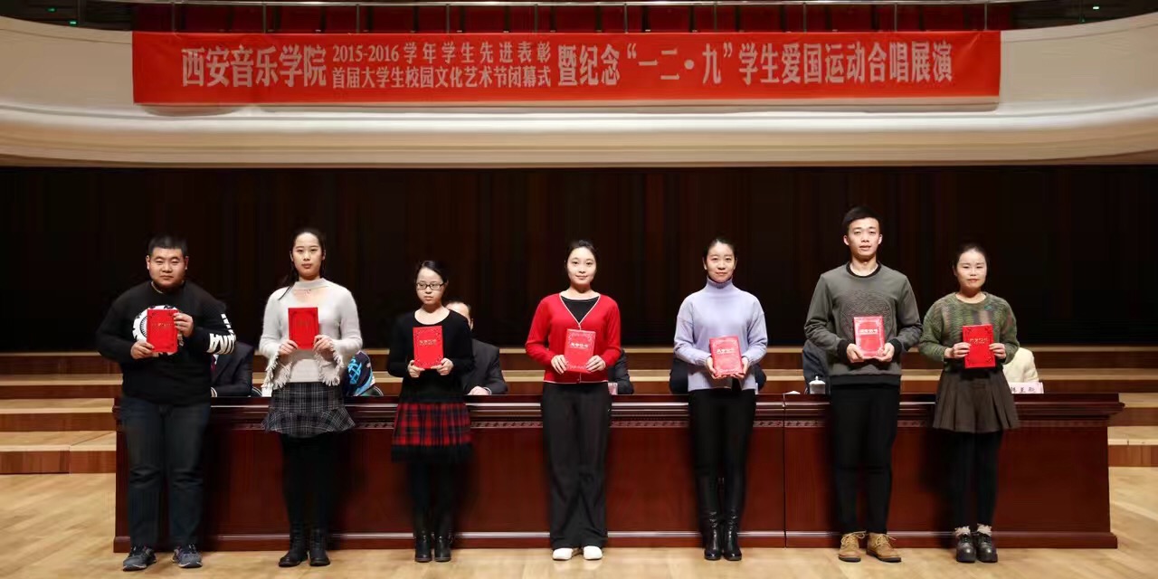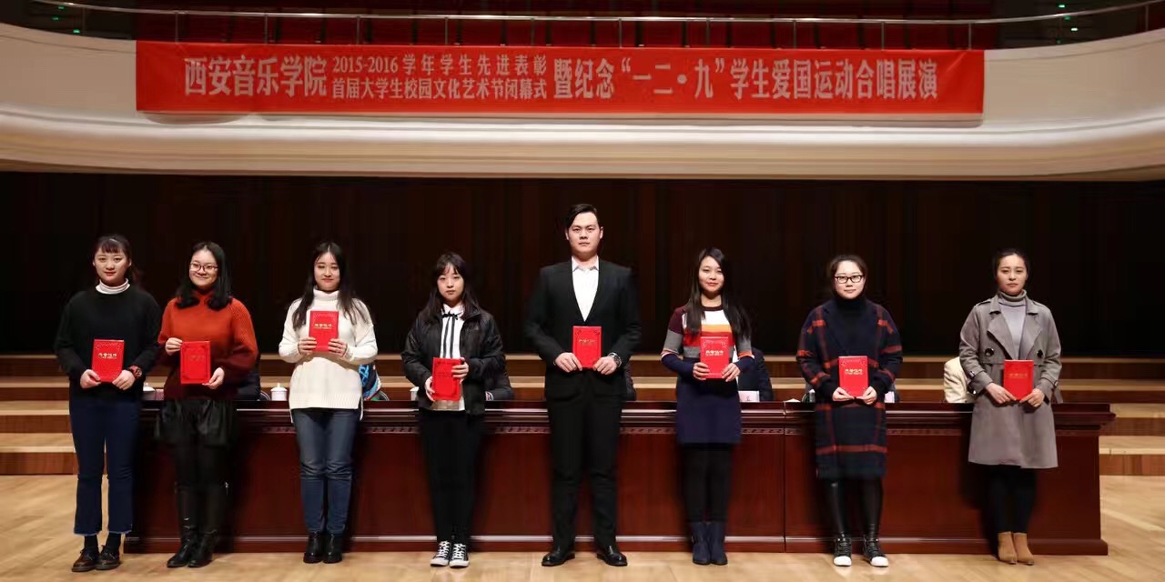 为进一步推进爱国主义实践教育,培养大学生的社会主义核心价值观,学院2015-2016学年度学生先进表彰与首届大学生校园文化艺术节闭幕式暨纪念“一二•九”运动的学生爱国运动合唱展演活动于2016年12月7日下午在艺术中心音乐厅举办。院领导出席大会并为获奖个人与集体颁奖。我系团总支因在我院大学生文化艺术节中表现出色获得“优秀组织单位奖”,陈俊洁和朱欣雨两位同学荣获“国家奖学金”。