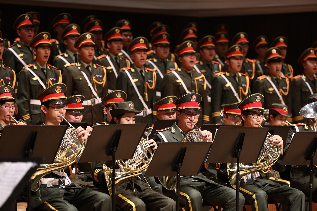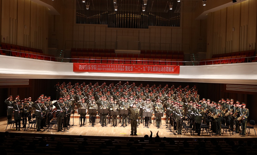 在合唱展演活动中,我系由140名学生组成的军乐合唱整齐划一、气势磅礴,在指挥刘明磊老师的带领下,完美演绎了《中国军魂》和《强军战歌》两首军旅作品,为全场观众带来了强烈的视觉冲击和听觉震撼,获得好评。