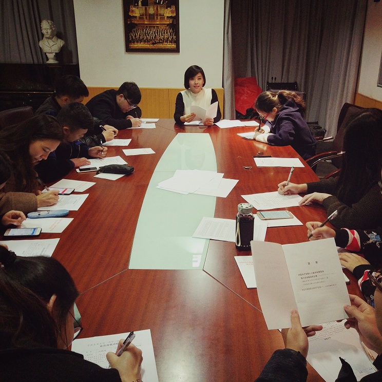 教工党支部党员大会于12月21日下午在1820会议室召开。会上,传达学院近期有关会议精神,处级党员干部以讲党课方式结合我系实际,引领党员们学习了习近平总书记系列重要讲话,尤其是习近平总书记在纪念长征胜利80周年大会上的讲话,在全国文代会、作代会,以及全国高校思想政治工作会议上的重要讲话。专题组织生活会期间,全体党员对照党员标准和工作职责开展批评与自我批评、自我评价和民主评议的同时,也对院系党建、教学、艺术实践、人才培养等中心工作提出了意见建议,大家畅所欲言,现场民主氛围浓厚。最后支部书记对标“四对照四查看”,就支部自身建设、制度落实,党员学习教育、遵守纪律和作用发挥等方面存在的问题进行梳理,并提出整改意见。