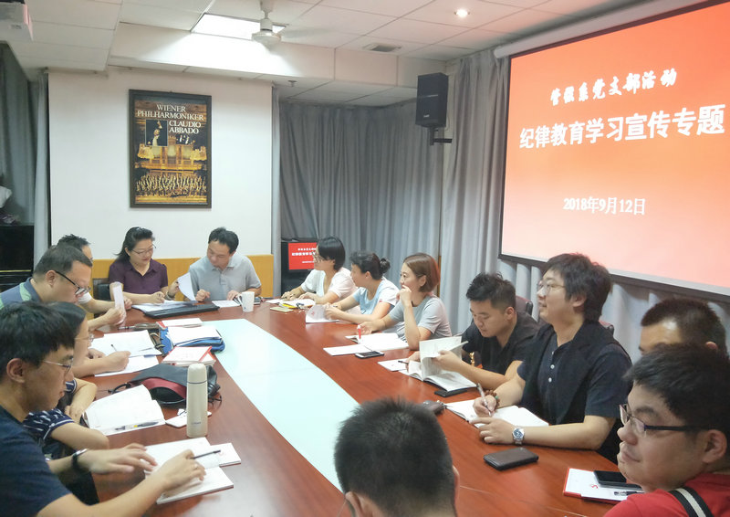 按照党委工作部署,管弦系党总支分别于9月11日和9月12日召开系教工党支部和学生党支部党员大会,以“强化纪律刚性约束,时刻绷紧纪律之弦”为主题开展党员纪律教育学习宣传主题活动。