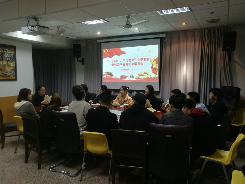 2019年10月17日,管弦系学生党支部组织全体学生党员举办“不忘初心、牢记使命”主题教育集体学习研讨会。
