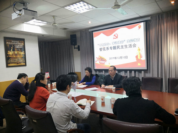 2019年12月10日,管弦系召开“不忘初心、牢记使命”主题教育专题民主生活会,校党委副书记、第三巡回指导组组长刘正利到会指导。