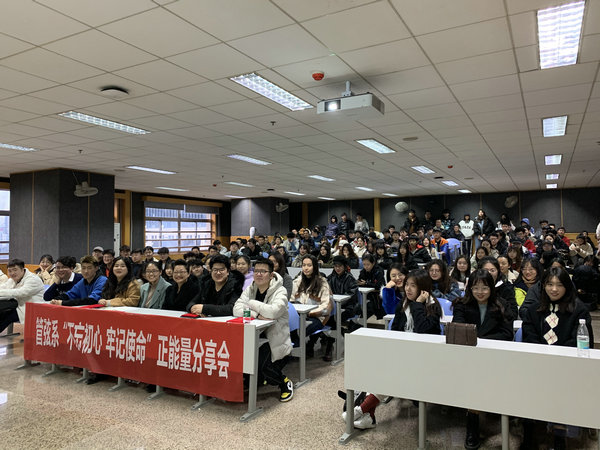 为选树优秀典型好青年,激发向上向善正能量,2019年12月18日,管弦系党总支、团总支部举办了“不忘初心、牢记使命”正能量分享会。管弦系百余名师生参加了此次活动。
