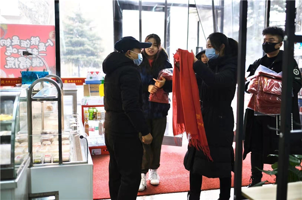 管弦系多支温暖行动小分队在中午时间到达学校包括琴管值班室、保卫值班室和食堂的各个服务点,为辛苦服务师生的阿姨叔叔们上演了一场快闪表演,并为这些辛勤苦劳作的人们围上定制的温暖围巾,送上管弦系师生的祝福与感谢。