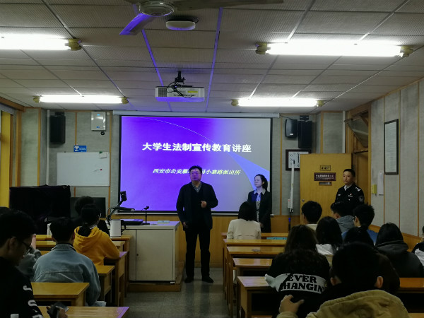 讲座上,西安市公安雁塔分局小寨路派出所徐勇军警官以“知法懂法,构建平安校园”为主题,用“身边的人”、“昨天的事”告诉同学们面对诱惑要学会拒绝,面对是非要学会辨别,遭遇面前要学会机智,突发事件要学会自救。既有理论,又联系实际,尤其注重剖析同学们在日常学习、生活和思想上存在的一些问题,使同学们了解养成良好道德品性的重要性。徐警官还特别提醒同学们要远离潜在危险,保护人身安全,并结合近期社会及校园发生的一些违法犯罪的真实案例,来增强学生的法治观念,提高师生的安全及防范意识。保卫处负责人还对同学们提出了两点要求:第一,增强法律意识,做遵章守纪的好学生。第二,提升防范能力,当护法爱校的好战士。讲座具有很强的针对性和实用性。