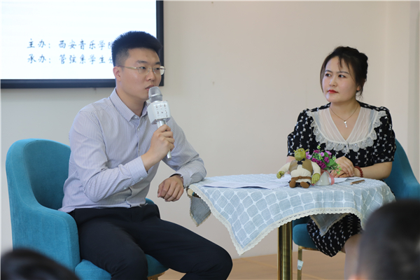 2021年是中国共产党成立100周年,在校学生会和管弦系团总支的组织下,管弦系学生分会创办《学长沙龙》栏目,搭建在校学生与优秀学长之间的沟通和学习平台。2021年5月31日下午,《学长沙龙》第四期“携笔从戎”在图书馆三楼举办,特邀来自西安音乐学院14届的毕业生林诗昊学长。管弦系二十余名优秀学生代表参加此次活动。