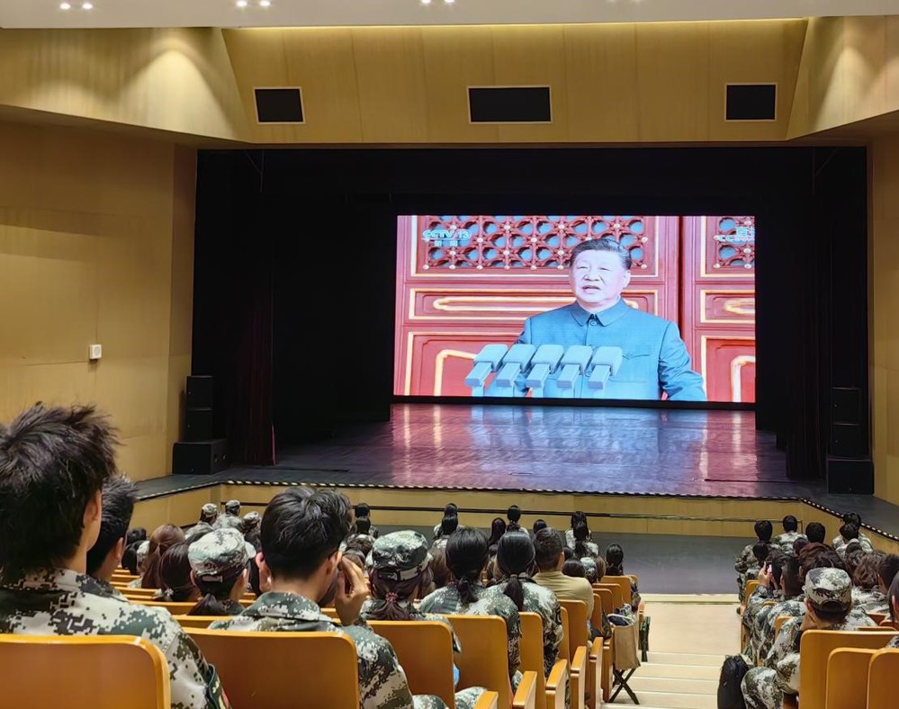 2025年9月3日上午,纪念中国人民抗日战争暨世界反法西斯战争胜利80周年大会在北京天安门广场隆重举行。管弦系组织全体学生实时观看阅兵盛典,其中25级全体新生在学校艺术中心歌剧舞剧厅集中收看实况转播。