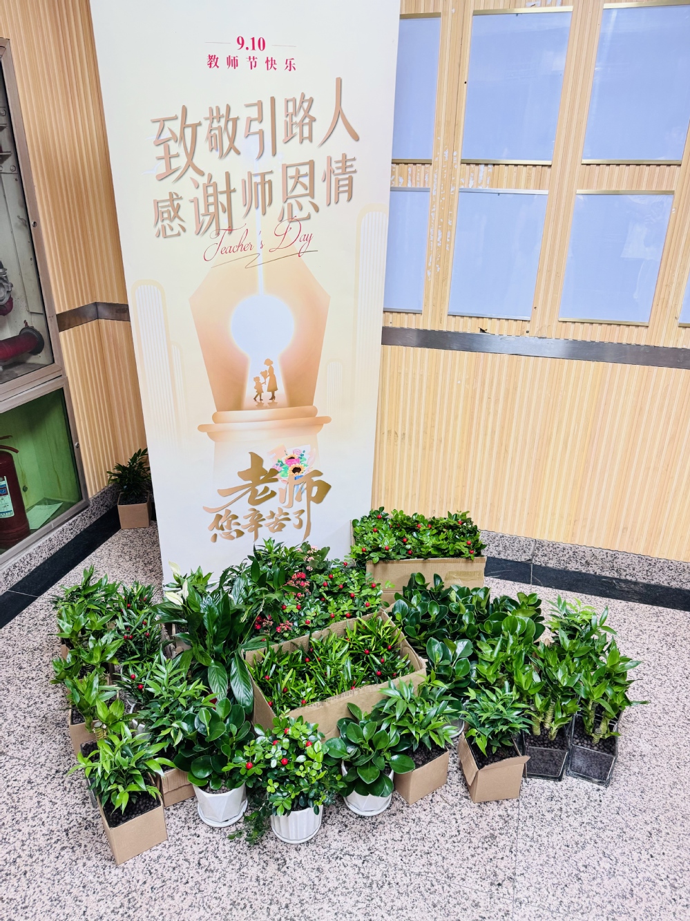 上午课间时分,学生代表们手捧一盆盆精心挑选的绿植,走进办公室、教室和排练厅,将这份特殊的节日礼物送到每位教师手中。这些绿植青翠欲滴,形态可人,既装点了教学环境,更寄托着同学们对老师的美好祝愿。