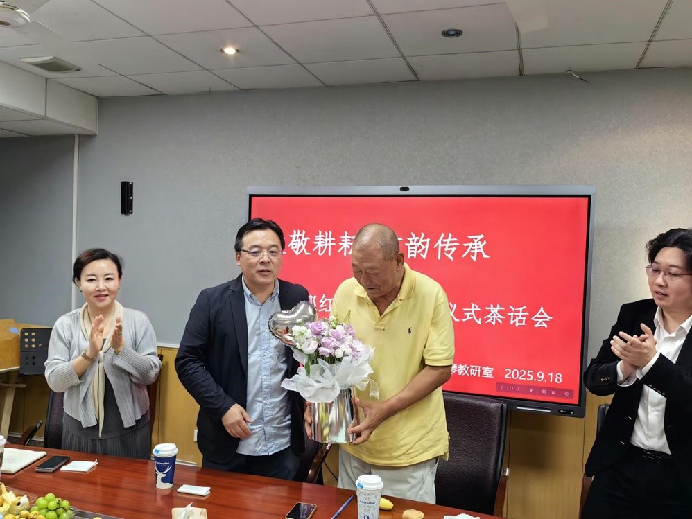 茶话会由小提琴中提琴教研室主任张志英老师主持。她在开场致辞中情真意切地表示,郭老师深耕教坛近四十载,始终全身心投入管弦系发展建设,其恪尽职守的敬业精神与无私奉献的育人情怀,是全体教师值得躬身学习、接力传承的榜样。